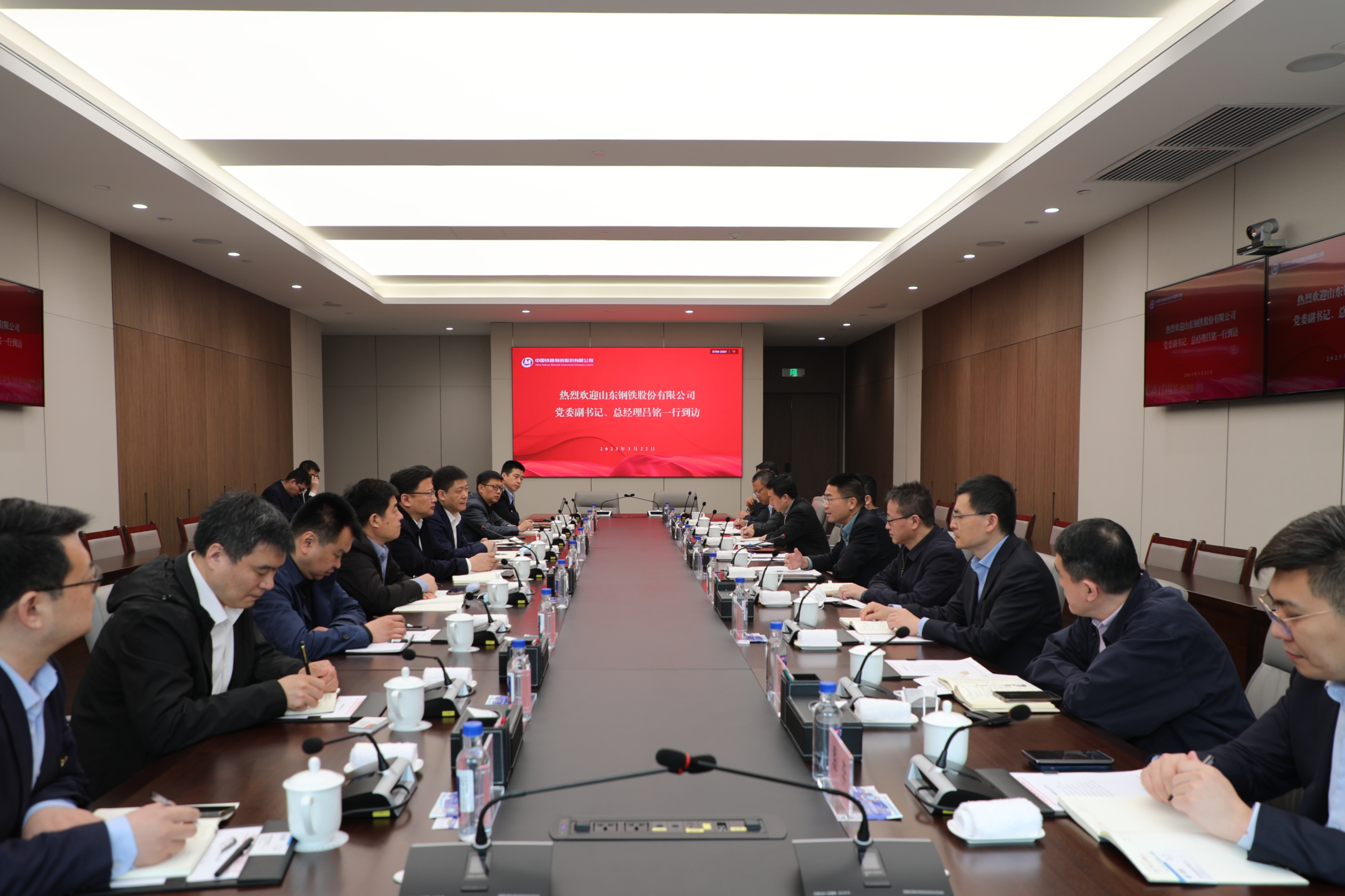 3月22日,,,,,中国物流集团党委常委、副总司理,,,,,中国304am永利党委书记、董事长杜波会见山东钢铁股份有限公司(以下简称山钢股份)党委副书记、总司理吕铭一行,,,,,双方就进一步深化战略相助举行友好谈判。。。。。中国304am永利副总司理孙珂加入谈判。。。。。